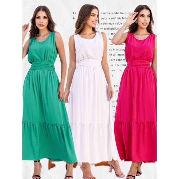 Vestido longo com clearance cinto grosso, Vestido off White com cinto Bella Vit ria Boutique clearance