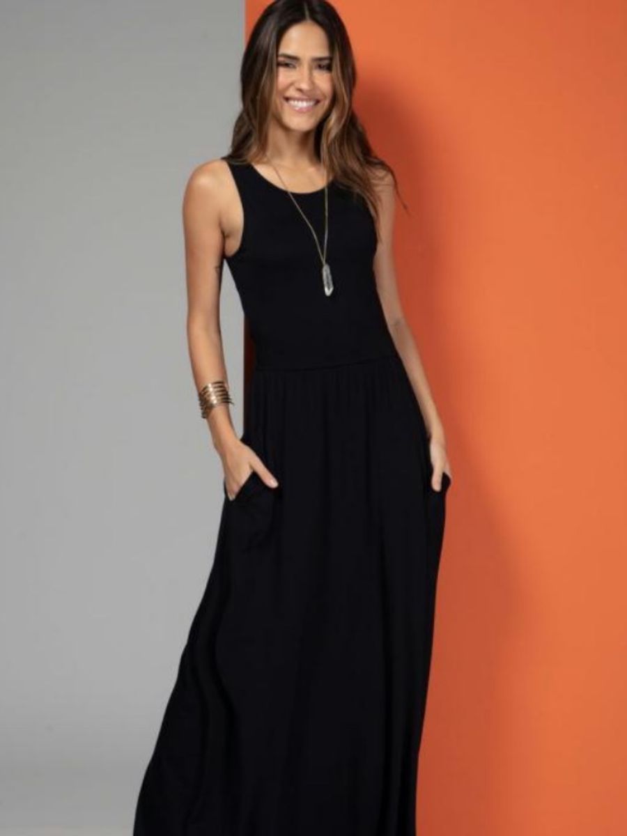 Vestido Longo Liso de Malha Vestido Feminino Quintess Nunca Usado 49979684 enjoei