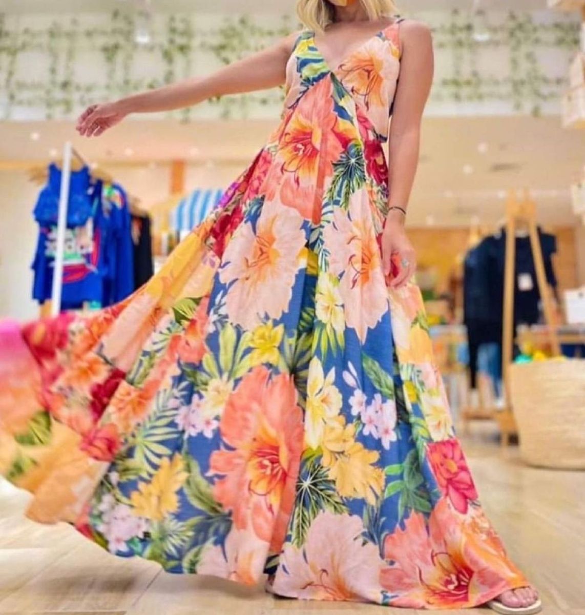 Vestido longo maxi clearance filipinas, Vestido longo floral amarra o LINDA MARIA STORES clearance