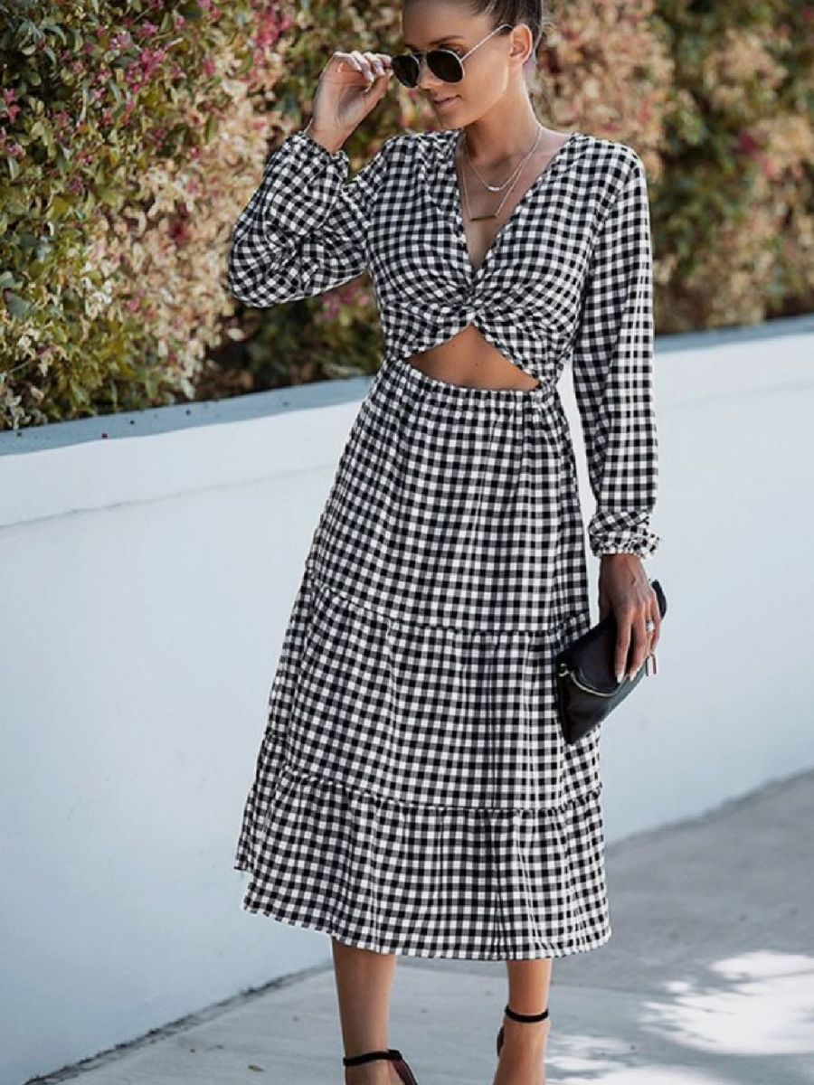 Vestido Midi Xadrez Preto e Branco Via Moderna Boutique