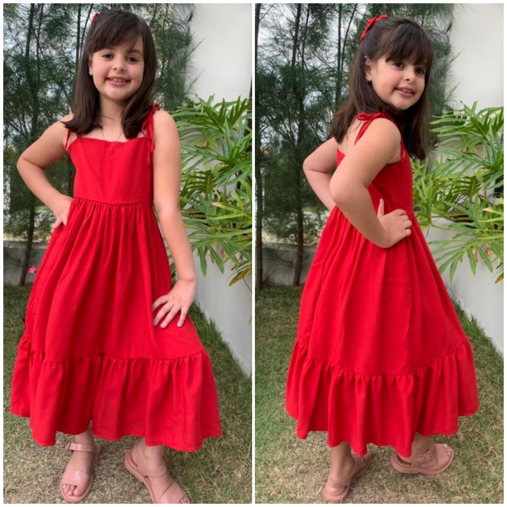 Vestido Modinha Infantil Midi Menina Com Al a Ver o Rodado
