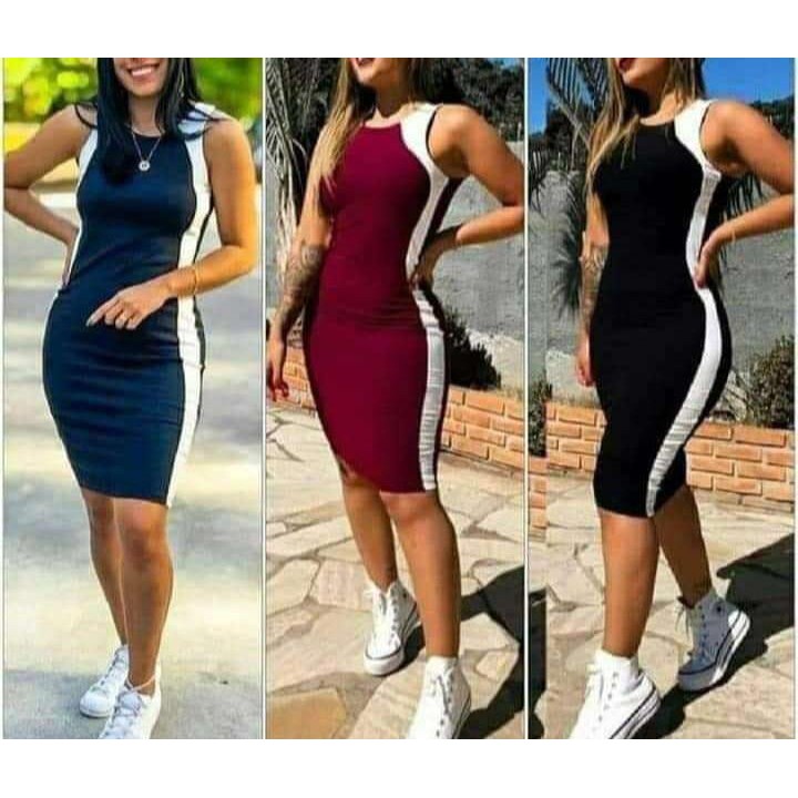 Vestido MID Midi canelado com faixa lateral Shopee Brasil