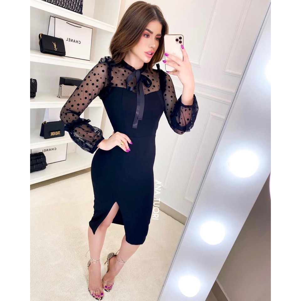 Vestido tubinho preto para fotos clearance de formatura, Vestido Midi Gg Convidadas Casamento Aniver Tubinho Preto Fenda Manguinha Vestido Feminino Elegance Nunca Usado 83403122 enjoei clearance