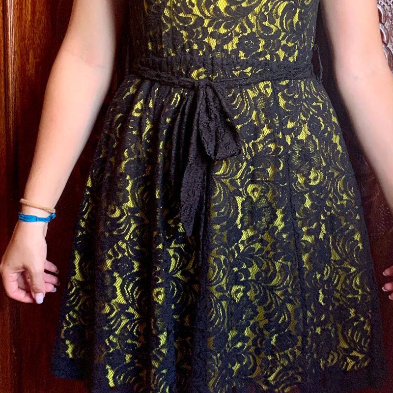 Vestido amarelo com clearance renda preta, Vestido de Renda Preto quila Tauheny Store clearance