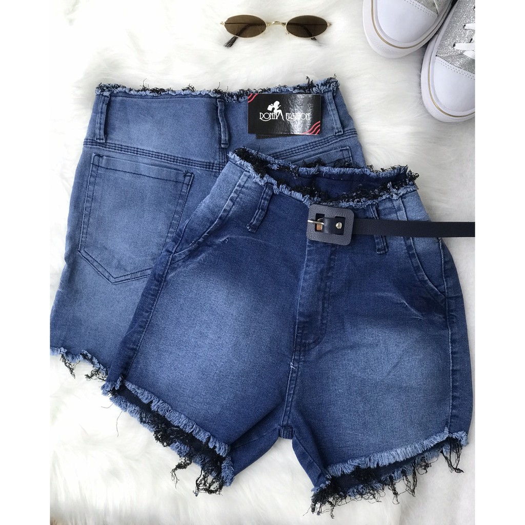 Short Jeans Desfiado Na Cintura E Embaixo Moda Blogueira