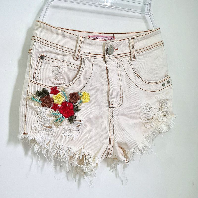 Short jeans branco clearance desfiado, Short Jeans Branco Florido Desfiado Bordado Shorts Feminino Usado 94783577 enjoei clearance