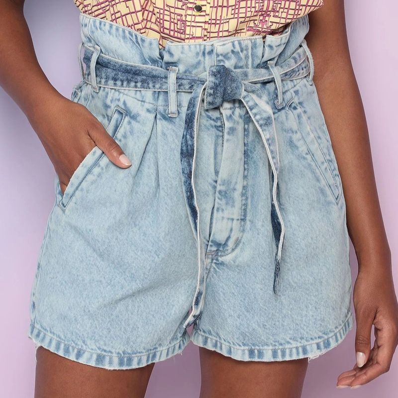 Short jeans com clearance amarração, Short Jeans com Amarra o Azul Claro Shorts Feminino City Blue clearance