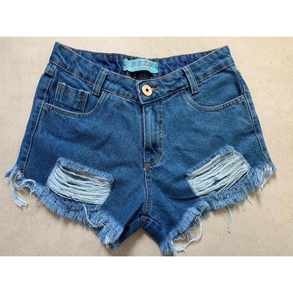 Short jeans desfiado clearance em cima embaixo, Short jeans clearance