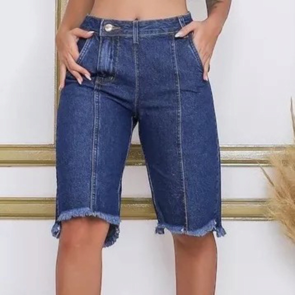 Kit 3 Bermudas Feminina Jeans Pedal Elastano Ciclista Alta