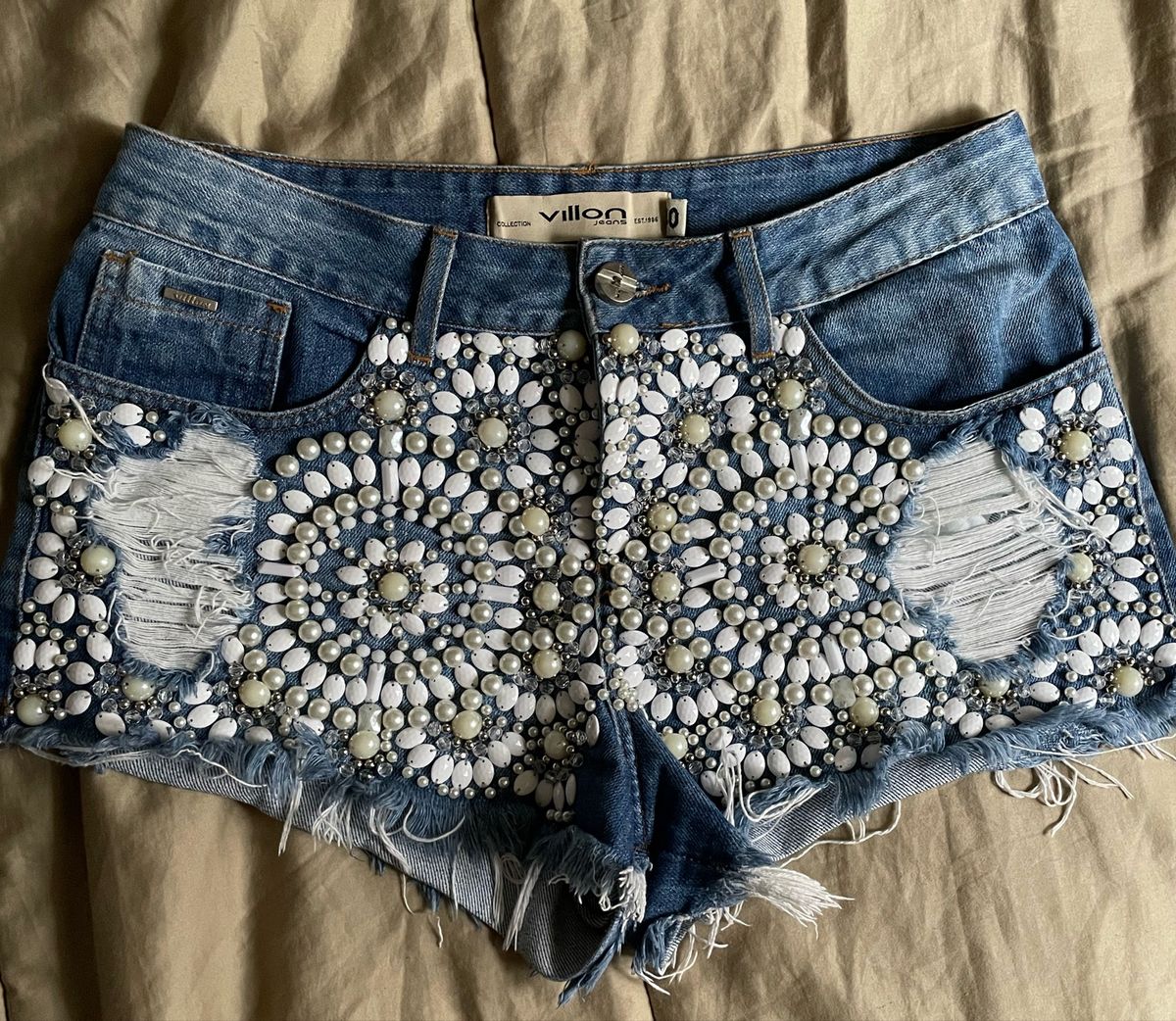 Short Jeans Bordado com Pedras Shorts Feminino Villon Jeans Usado 70316652 enjoei