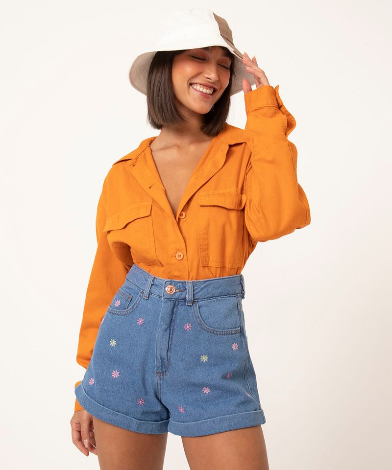 C&a clearance short jeans, short jeans mom cintura super alta bordado azul m dio clearance
