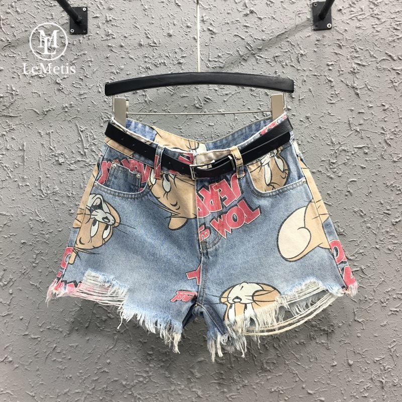 LeMetis Dibujos Animados Estampados Para Mujer Cintura Alta Ripped