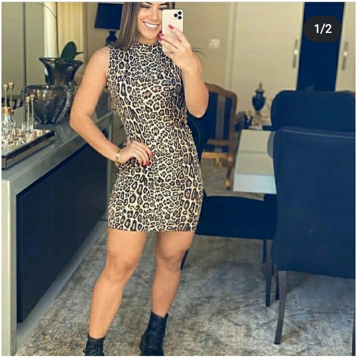 Trendy EOS Vestido Feminino Gola Alta Regata B sico Tubinho Animal