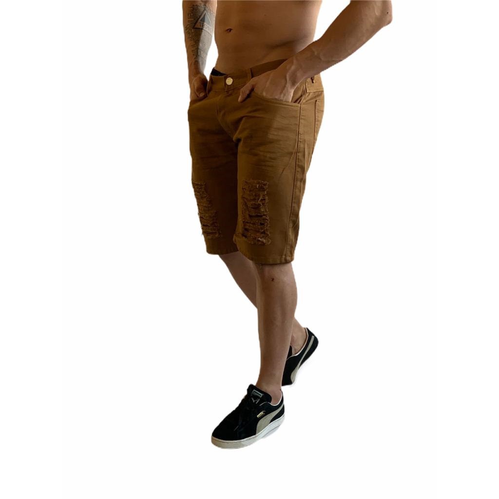 Bermuda jeans marrom clearance masculina, Bermuda Sarja Masculina Caramelo Tradicional Versatti Quatar clearance
