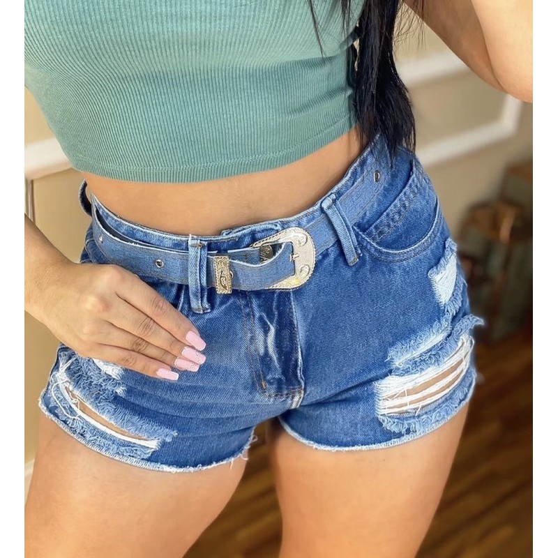 Short Jeans Feminino Cintura Alta Acompanha Cinto Lan amento
