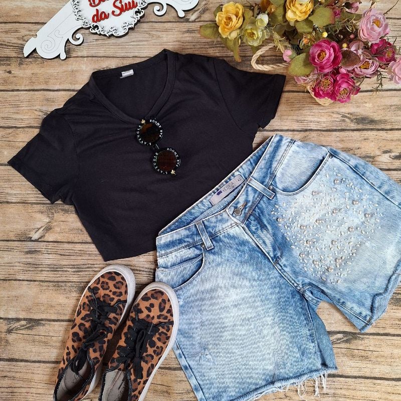 Short customizado com clearance perola, Shorts Jeans Feminino Customizado Perolas 42 Lind o Shorts clearance