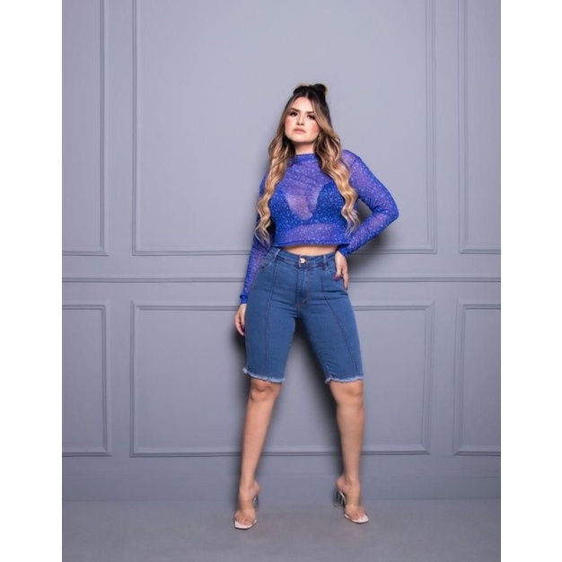 Bermuda Feminina Ciclista Jeans Lycra At O Joelho Shopee Brasil