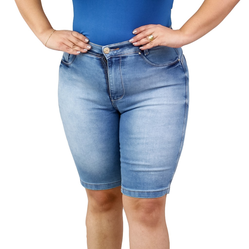 Bermuda Shorts Feminina Jeans Ciclista com Lycra Elastano