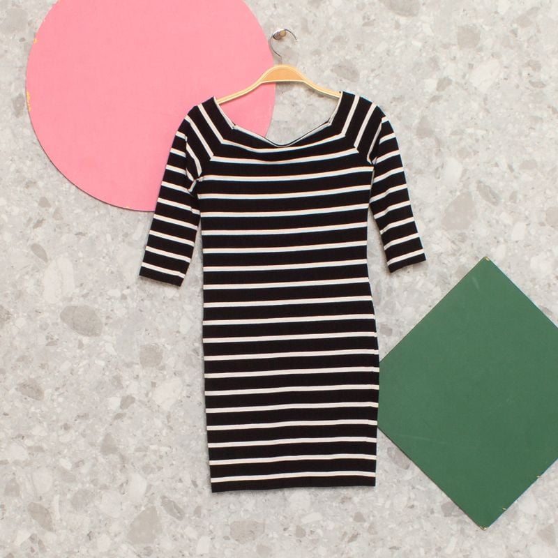 Vestido Curto Tubinho Listrado Preto e Branco Tamanho M
