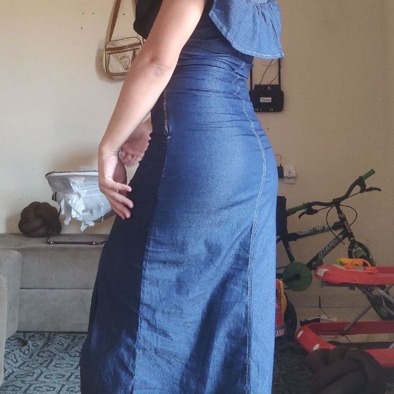 Vestido longo jeans clearance ciganinha, Vestido Jeans Longo Ciganinha e com Fenda Na Frente Vestido clearance