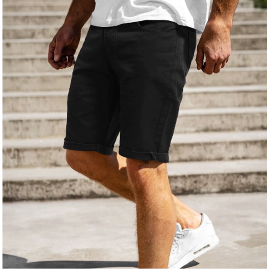 Bermuda Masculina Preta Lisa Sarja Slim Com Laycra Qualidade Premium