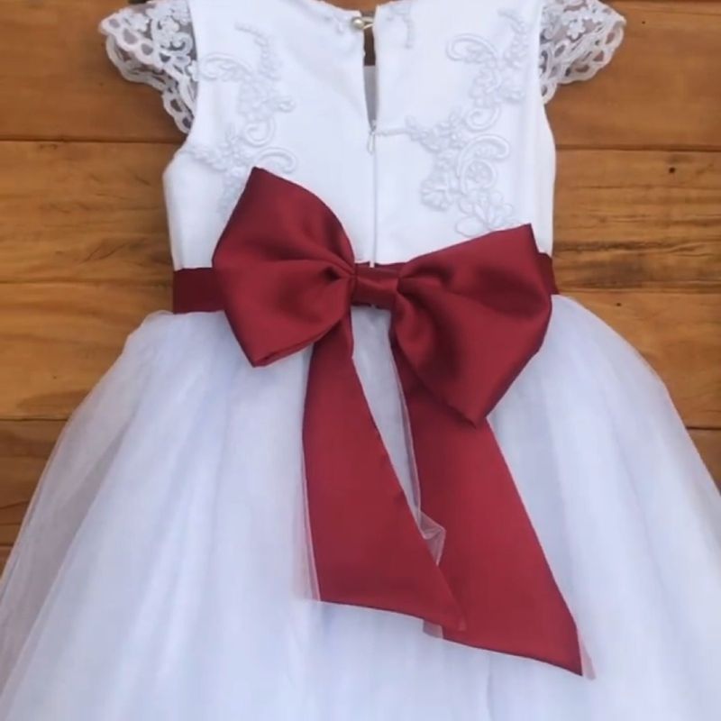Vestido de daminha branco com clearance laço vermelho