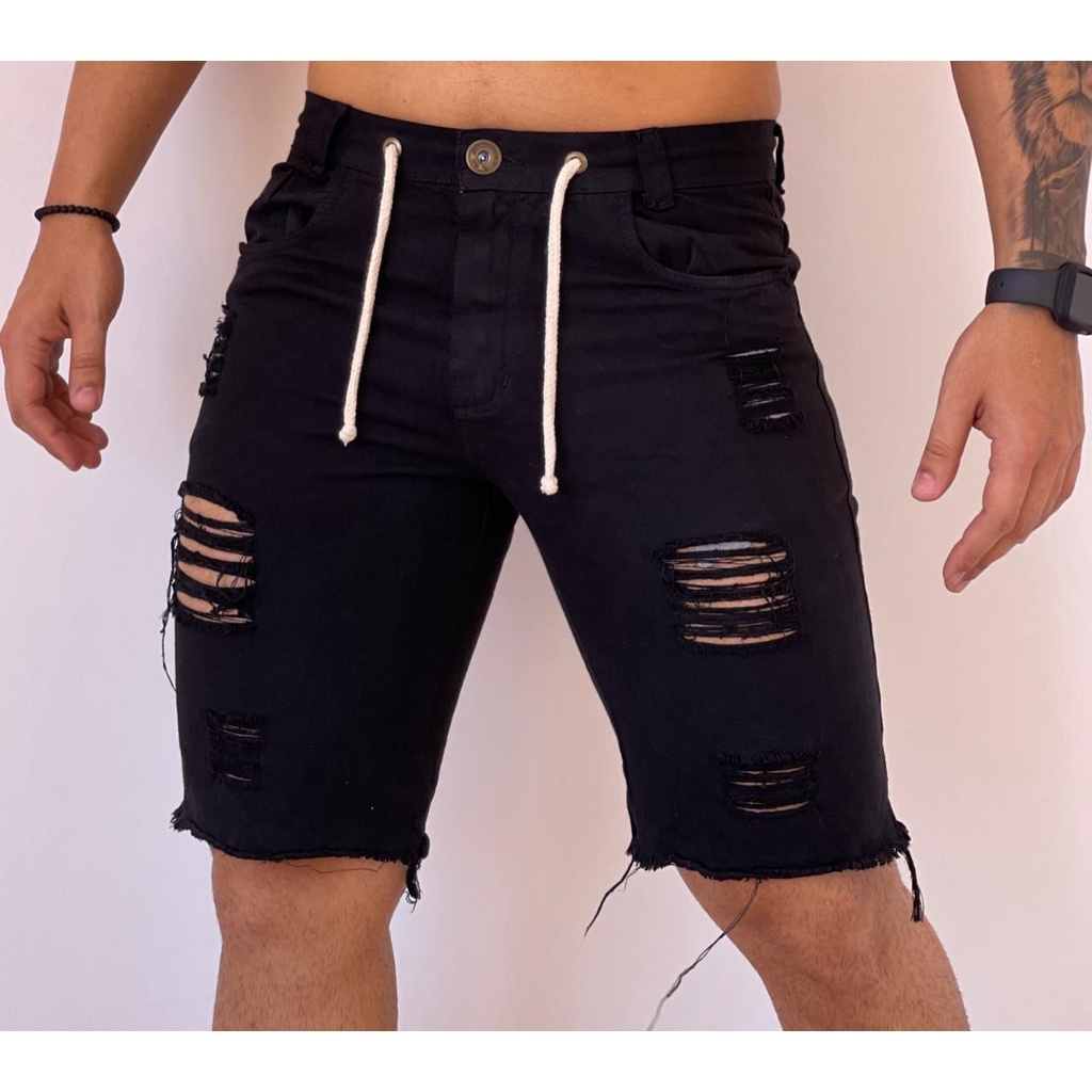 Bermuda short cal o jeans detonado destroid preto com cinto de