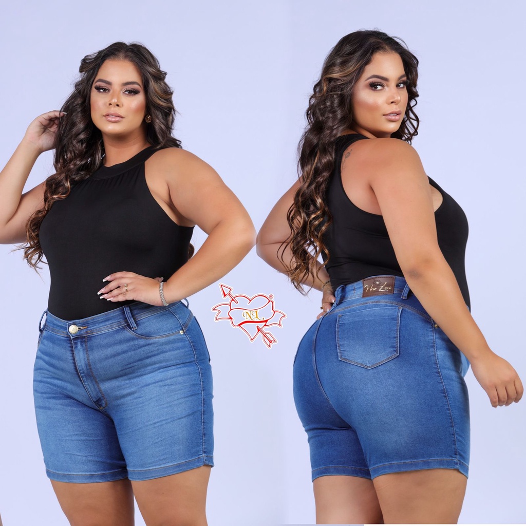 Bermuda Meia Coxa Plus Size Jeans Feminina 48 ao 54 Escorrega o