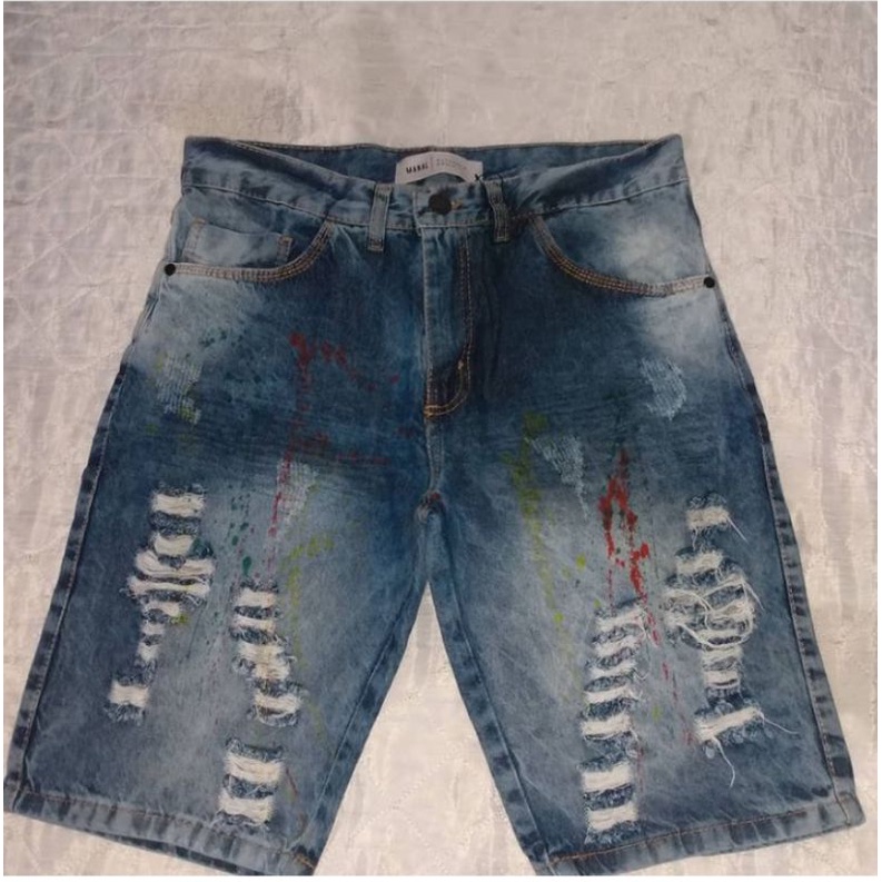 Bermuda clearance jeans manchada, Bermuda Masculina Jeans Manchada Marisa Marisa clearance