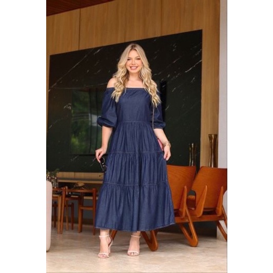 Vestido clearance jeans longuete, 6356 VESTIDO JEANS MANGA PRINCESA ZIPER FRENTE Vestidos clearance