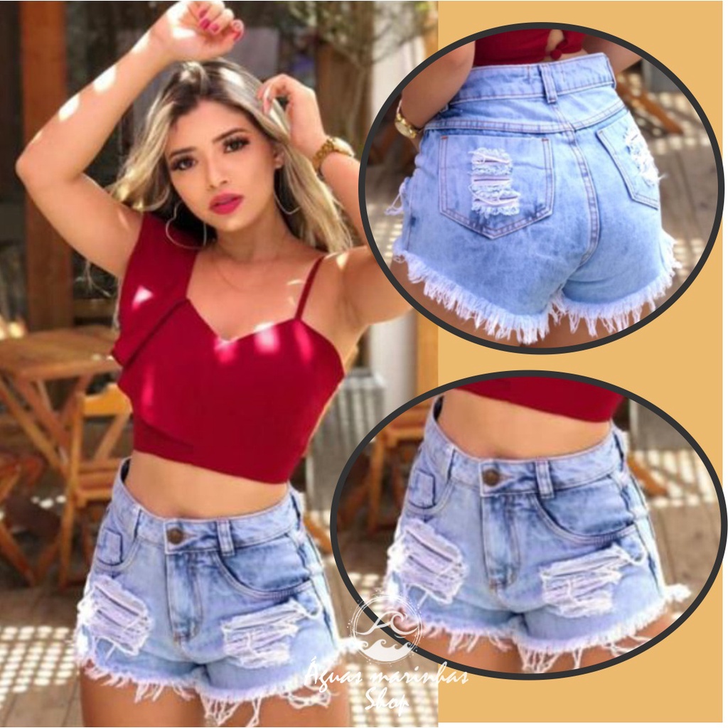 Short Jeans Feminino Cintura Alta Rasgado lindo claro lindo escuro