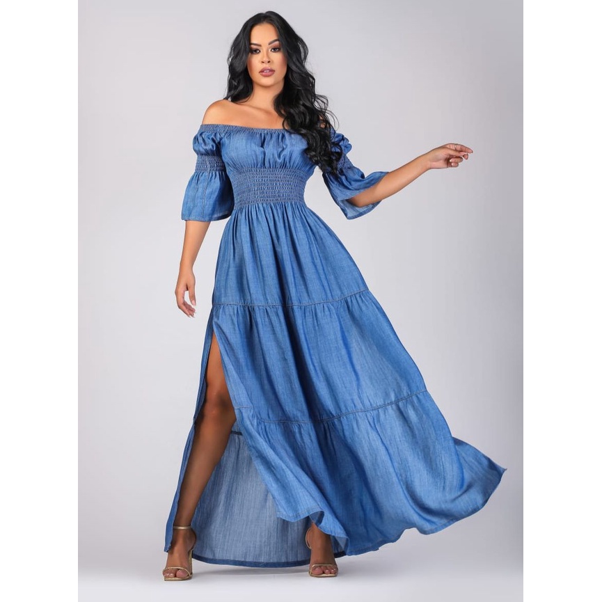 Vestido Jeans Ombro Cigana Vestido Feminino Usado 59986920 enjoei