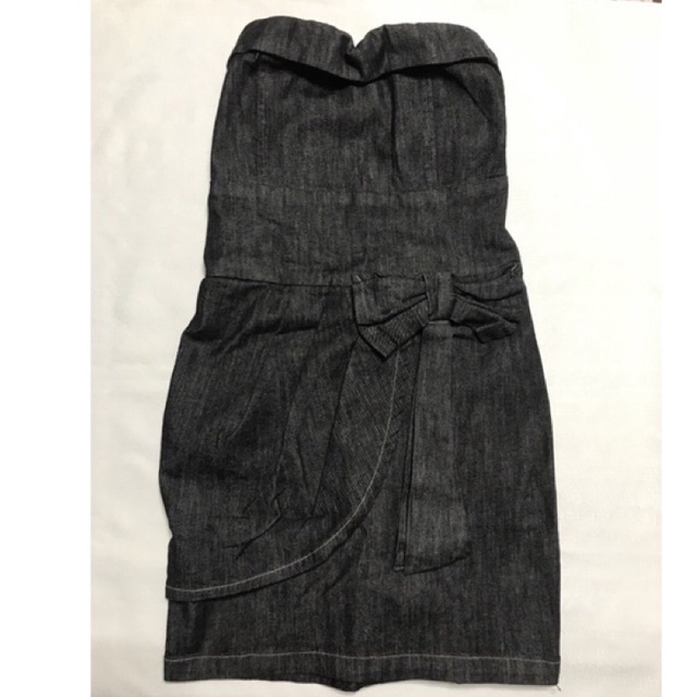 Vestido Jeans adulto Modelo Tomara que caia Cor Preto Lavado El stico na parte das costas para melhor ajuste Detalhe com la o na cintura com