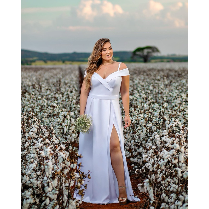 Vestido longo branco noiva simples liso Pe a nica tamanho 46 GG
