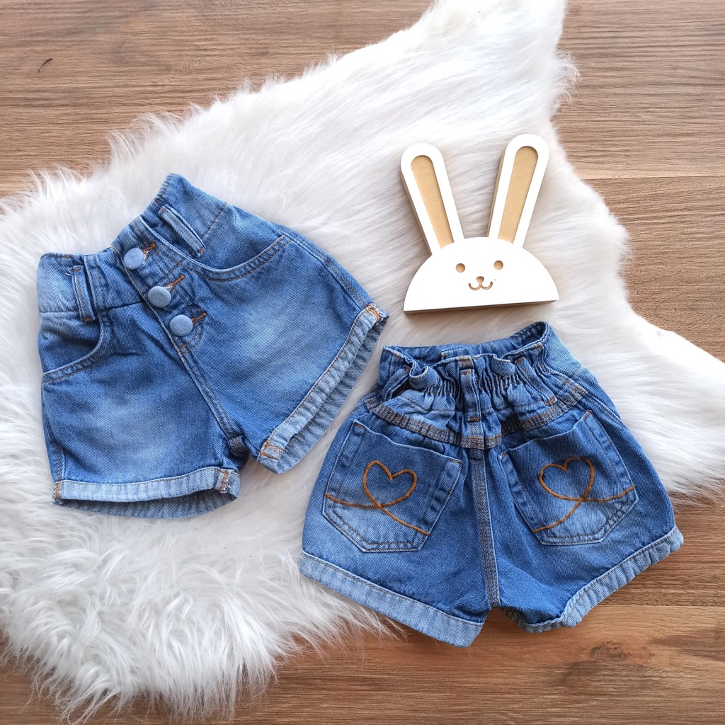 Short Jeans Cintura Alta Galuka Baby e Kids roupas e artigos