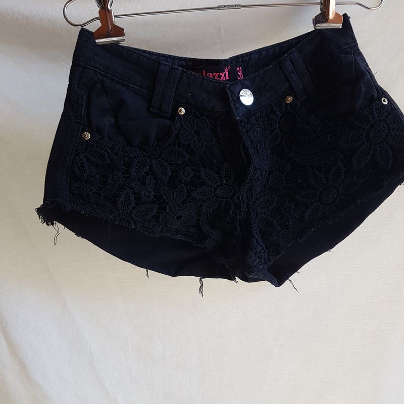 Short Jeans Preto com Renda Na Frente Shorts Feminino Palazzi