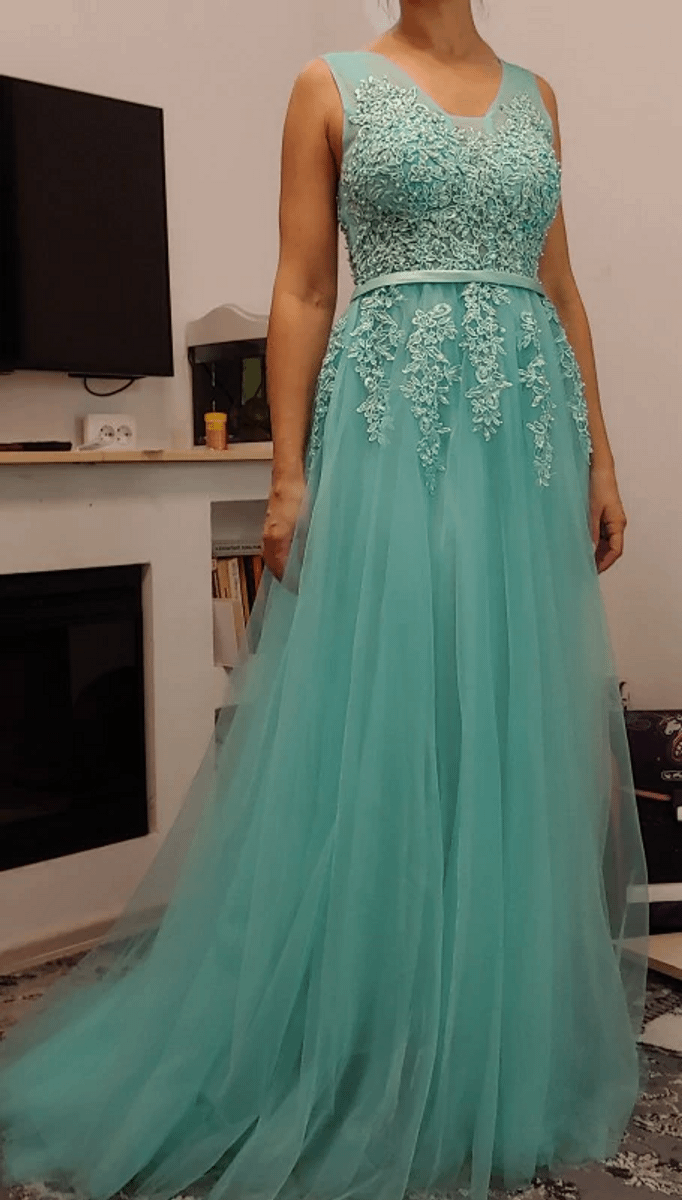 Vestido De Festa Izabel Bordado Verde Menta