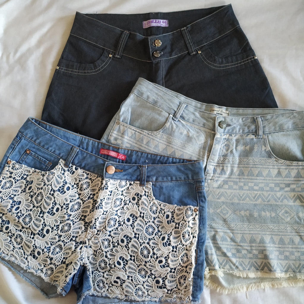 Shorts Jeans femininos Renda Guipir Tribal diversos tamanhos e modelos
