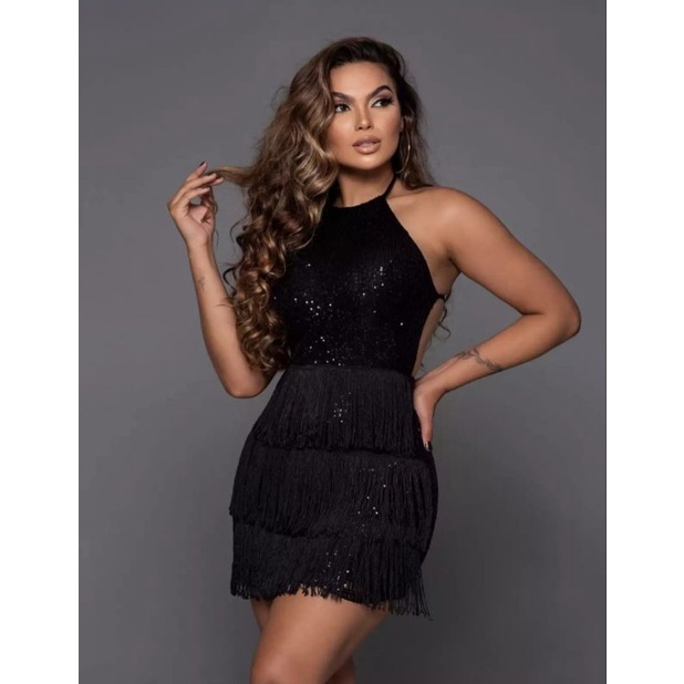 Vestido Preto com Franja Fashion e Caimento Perfeito
