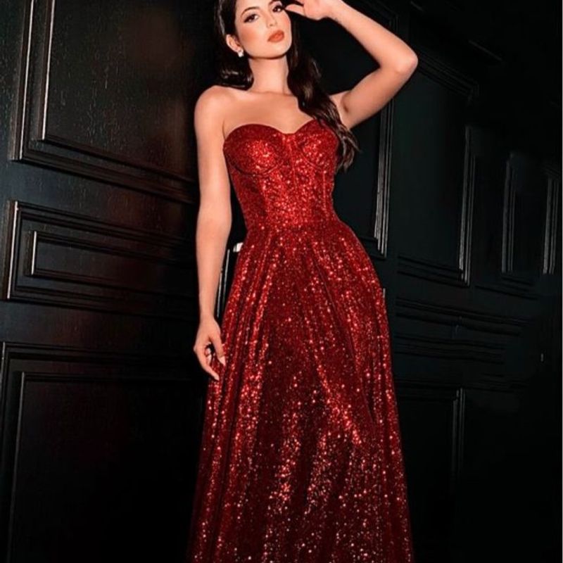 um fabuloso vestido vermelho cheio de brilho e vida maravigold