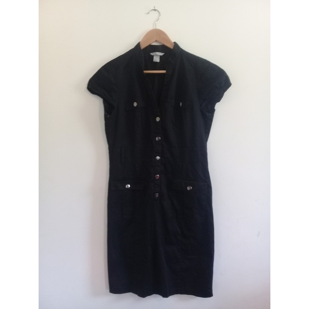 Vestido preto com clearance botões na frente