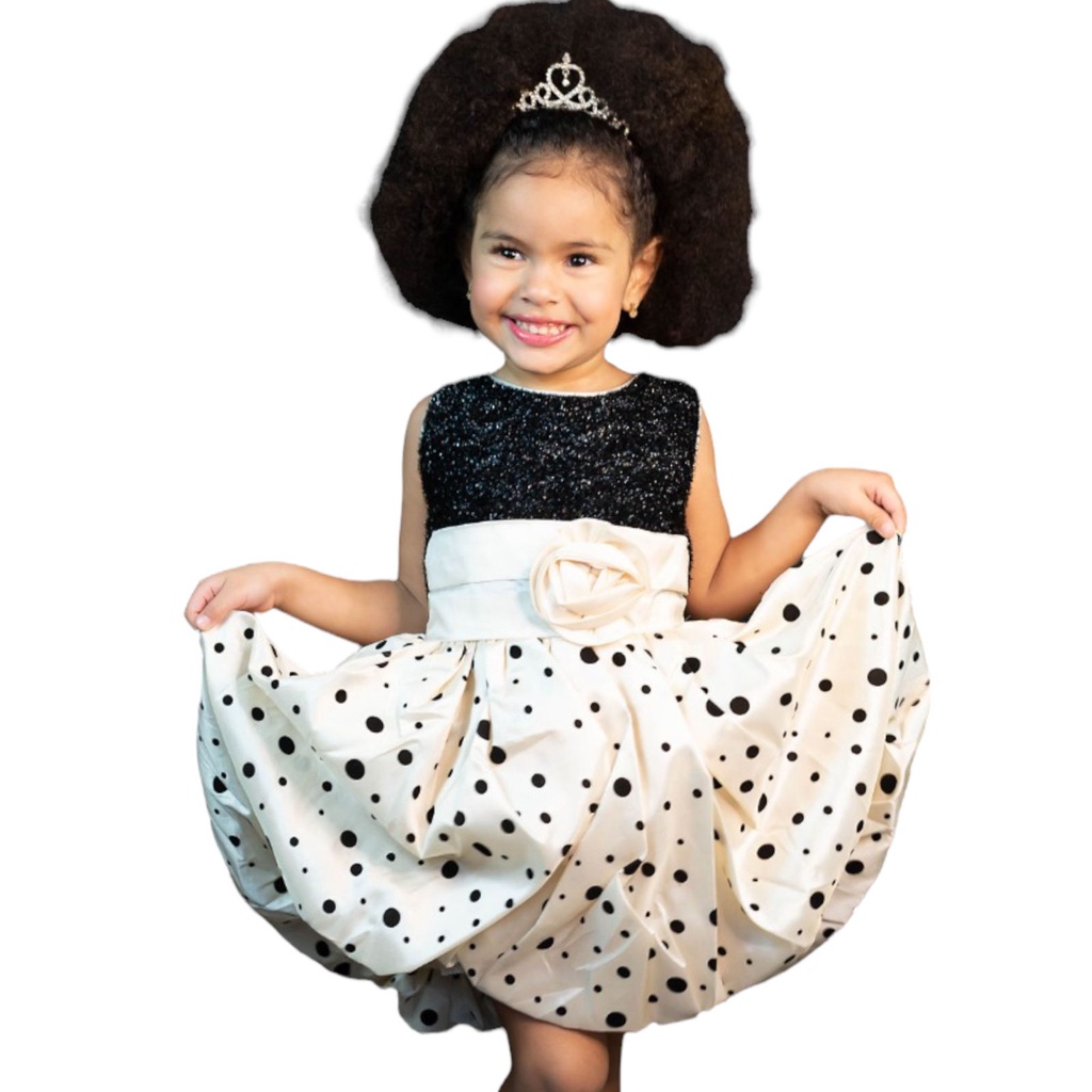 Vestido de Festa Balon Marfim Com Po e Paet Infantil
