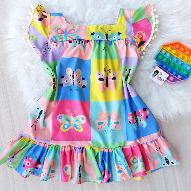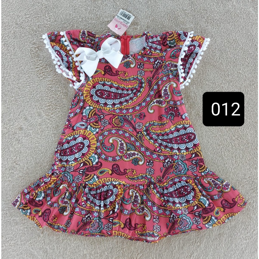 Vestido Infantil Pompom Estampado 8 meses a 6 anos