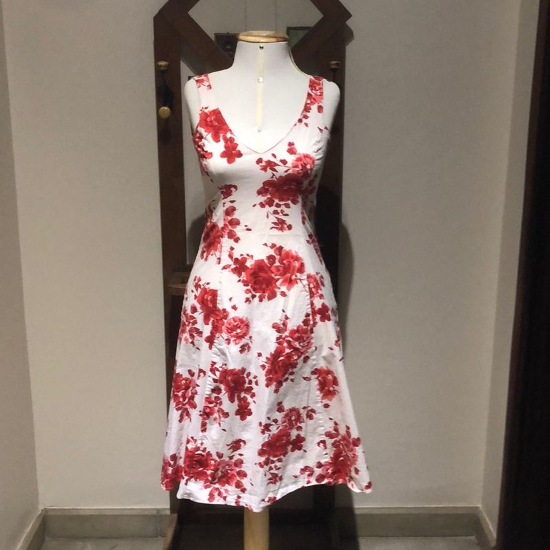 Lindo Vestido Branco com Flores Vermelhas Vestido Feminino New