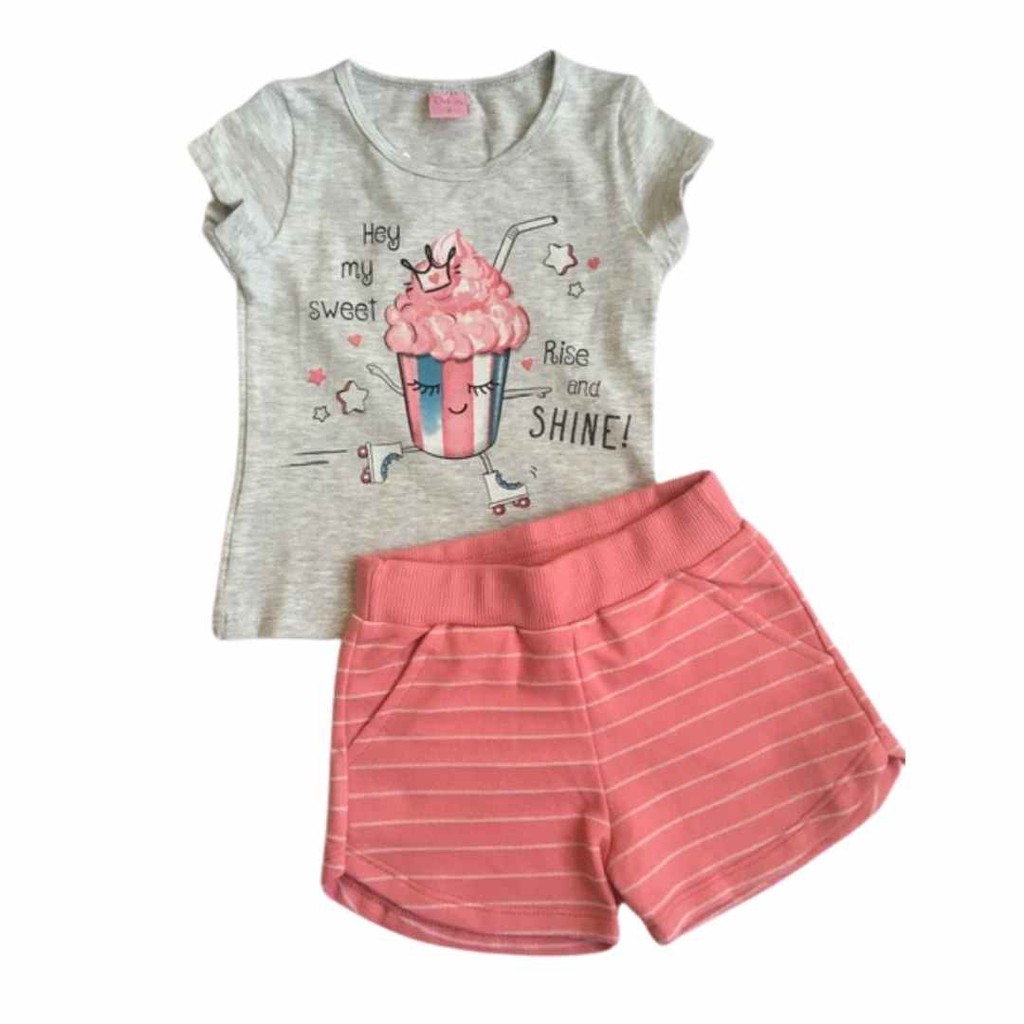DILA Conjunto Infantil Milk Shake Blusa e Shorts de Moleton para Menina