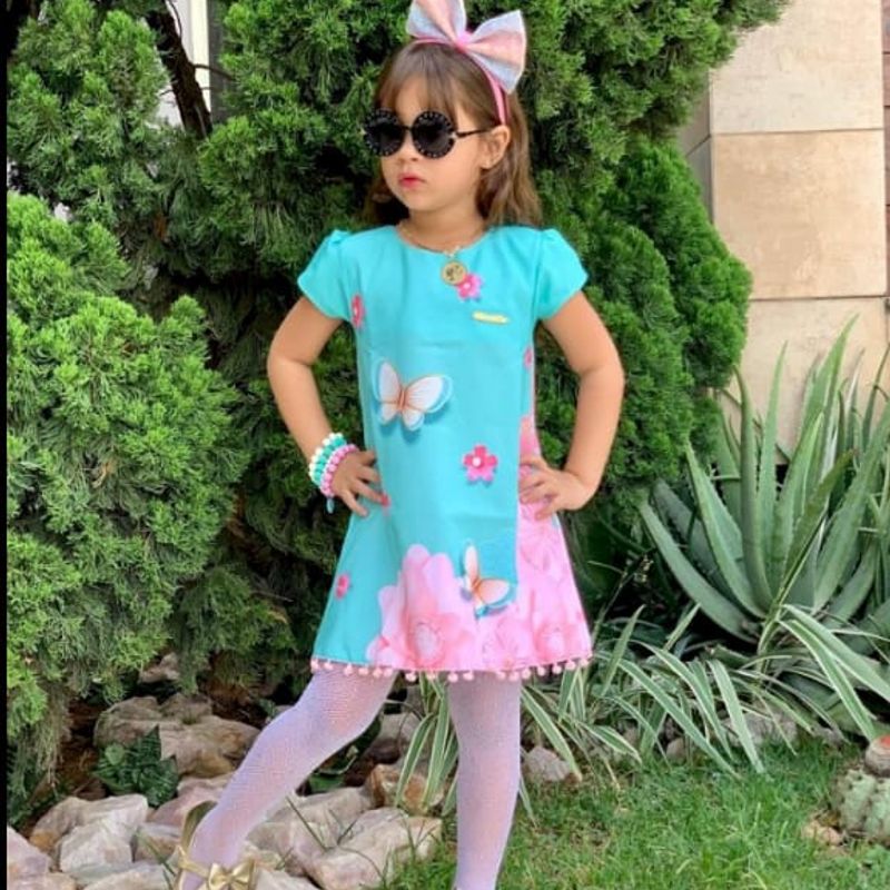 Vestido Infantil Blogueirinha Luxo Flores e Borboletas Azul Roupa Infantil para Menina Nunca Usado 70396895 enjoei