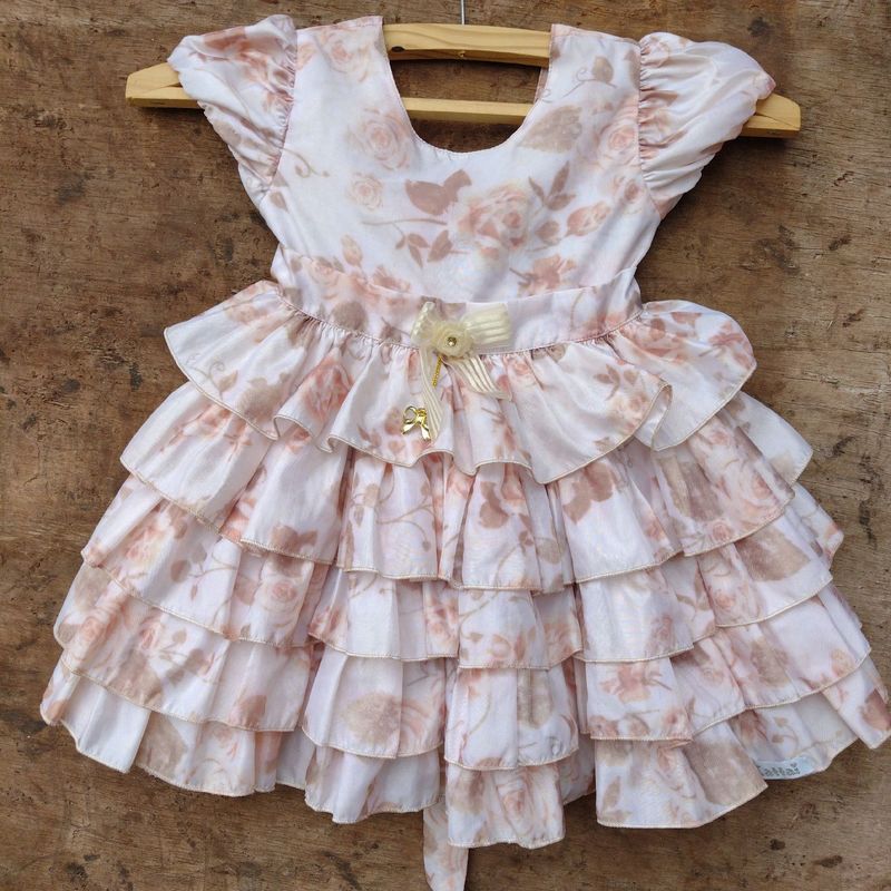 Vestido Infantil Salm o Floral com Aplique em P rolas Cattai