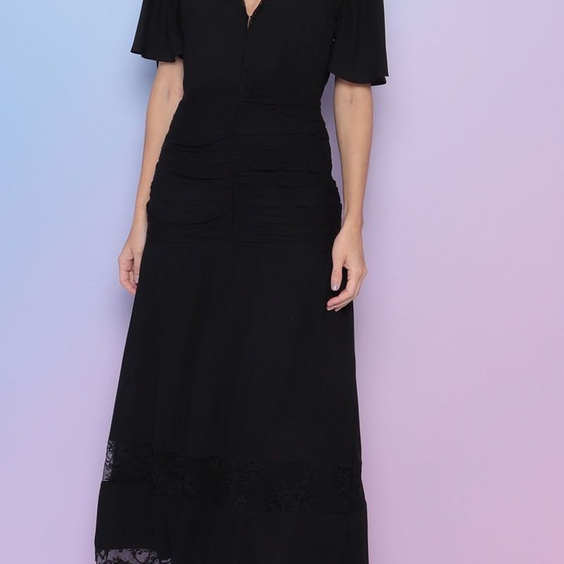 Vestido preto com clearance renda na barra, Vestido Preto Longo com Renda Na Barra Vestido Feminino Loft147 Usado 53767254 enjoei clearance