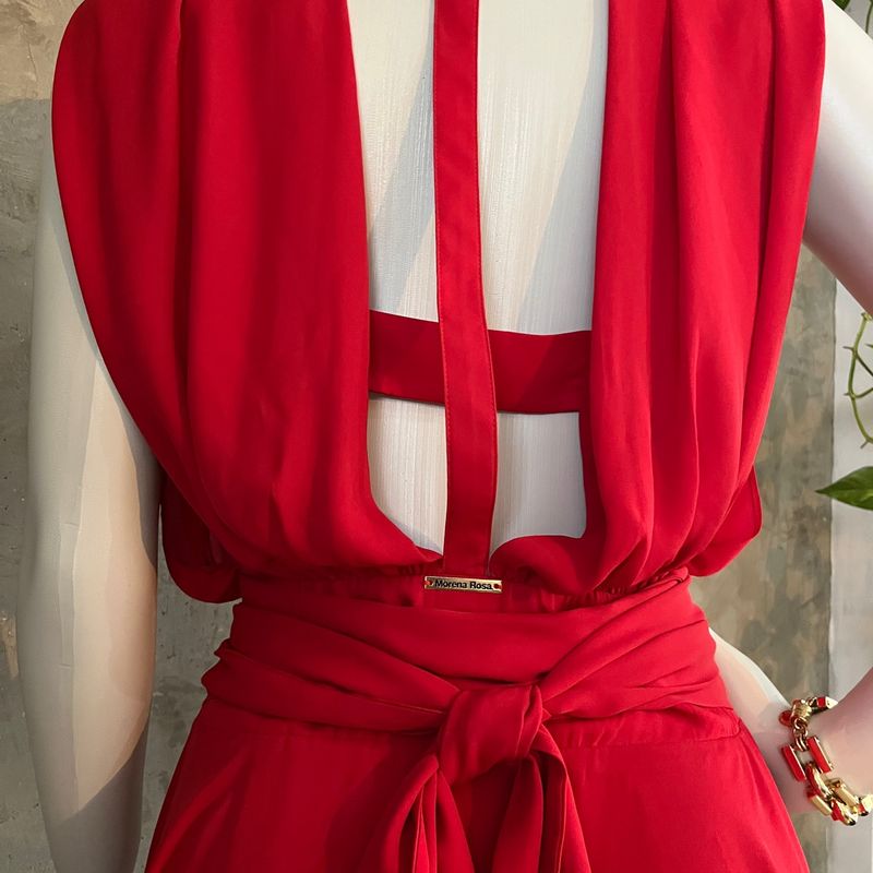 Vestido Morena Rosa Longo Frente nica Com Lastex Vermelho