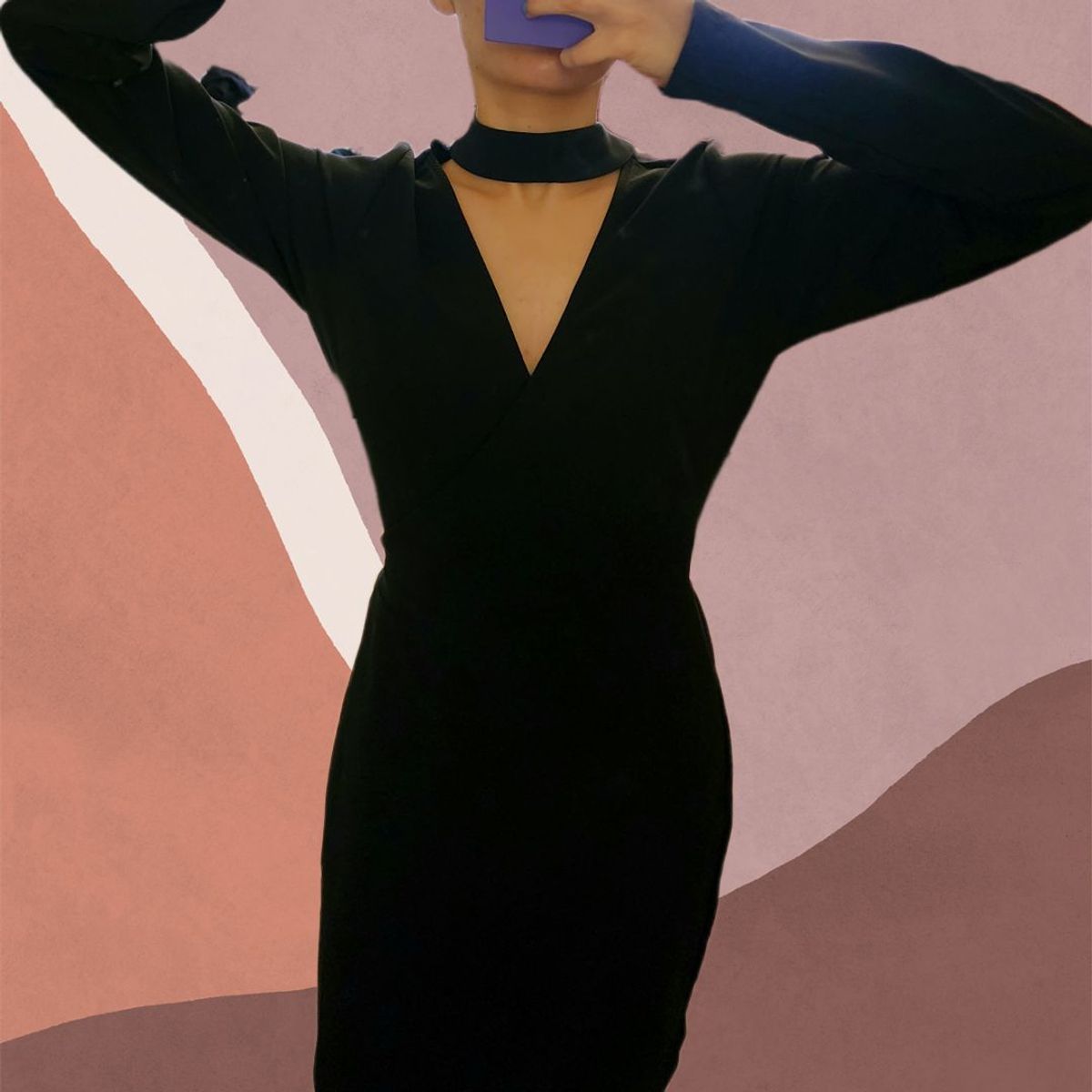 Vestido Preto Envelope e Gola Choker Lou Bucca e Mariee Tamanho